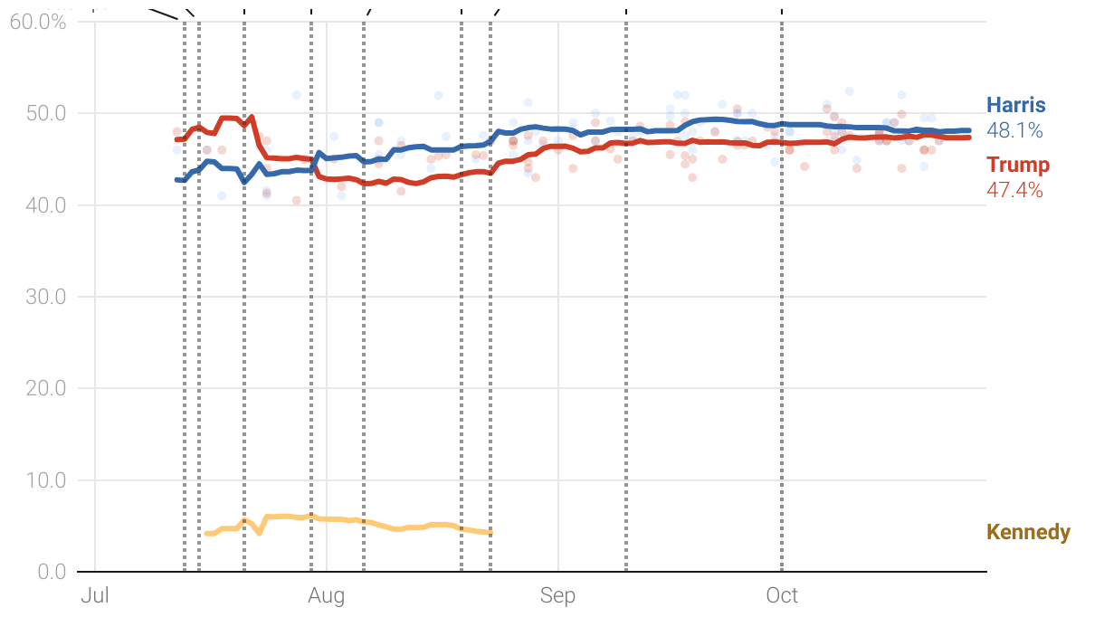 An updating average of 2024 presidential general election polls, accounting for each poll’s quality, sample size and recency