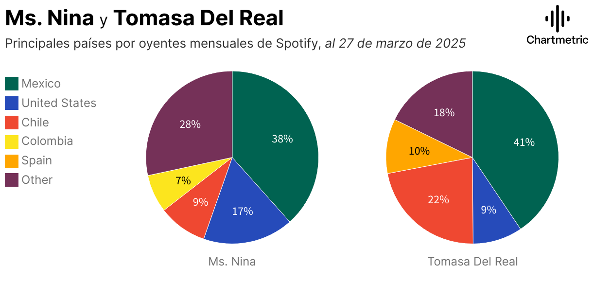 Principales países por oyentes mensuales de Spotify, al 27 de marzo de 2025