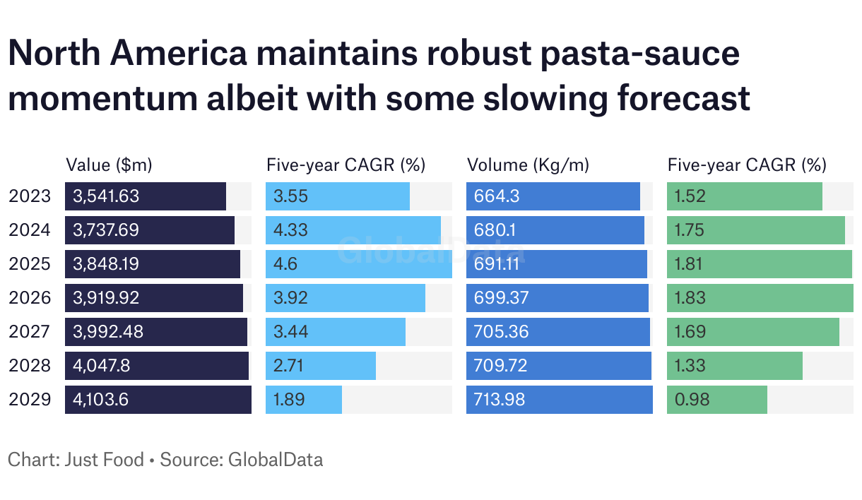 North America maintains robust pasta-sauce momentum albeit with some slowing forecast