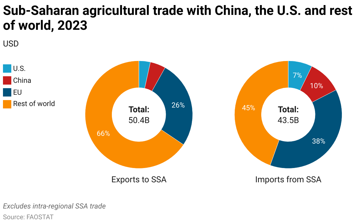 Sub-Saharan agricultural trade with China, the U.S. and rest of world, 2023