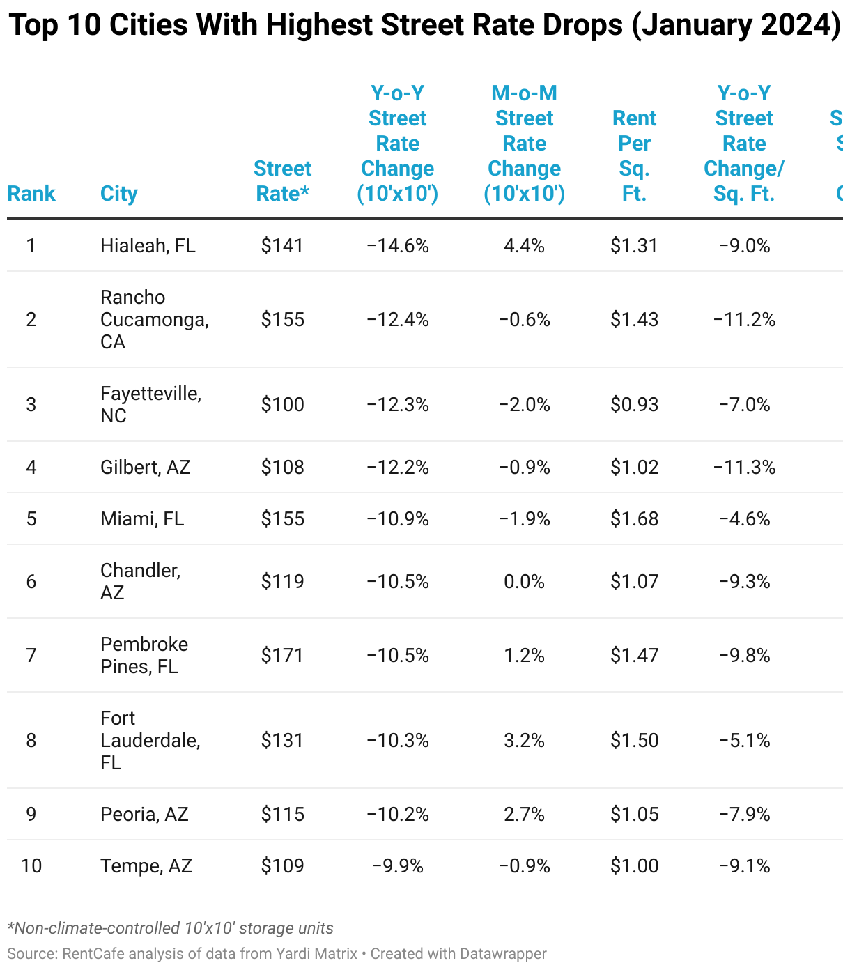 Top 10 Cities With Highest Street Rate Drops (January 2024)
