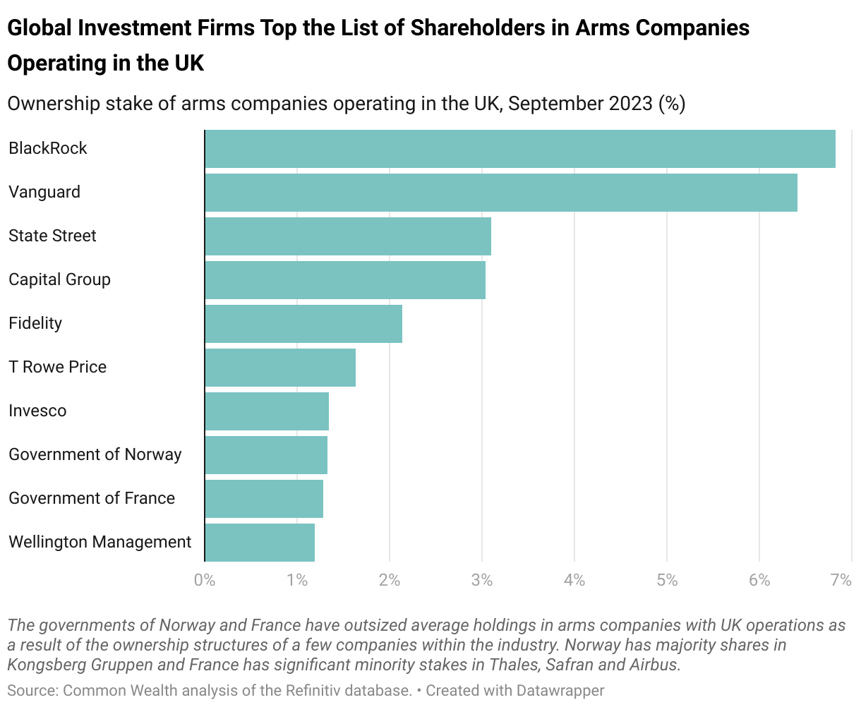 Ownership stake of arms companies operating in the UK, September 2023 (%)
