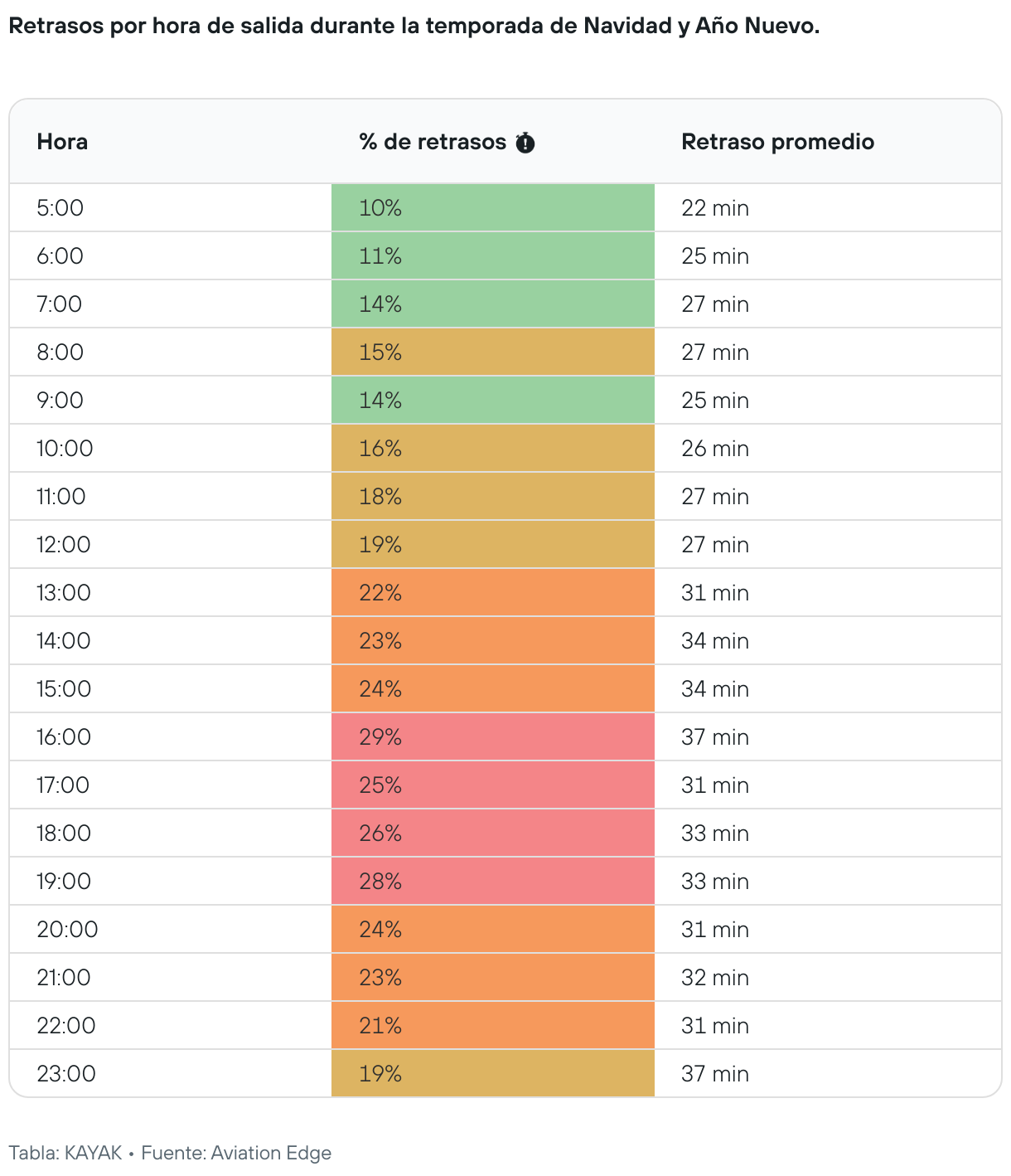 Retrasos por hora de salida durante la temporada de Navidad y Año Nuevo.