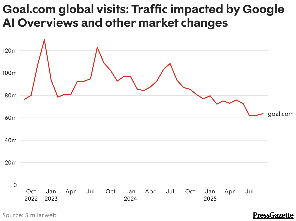 Goal.com global visits: Traffic impacted by Google AI Overviews and other market changes