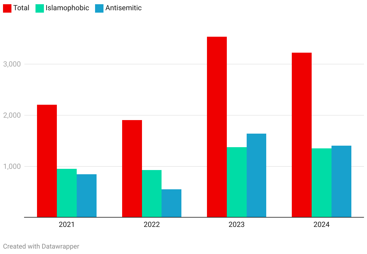 Number of reported hate crime offences based on religion or perceived religion in London*